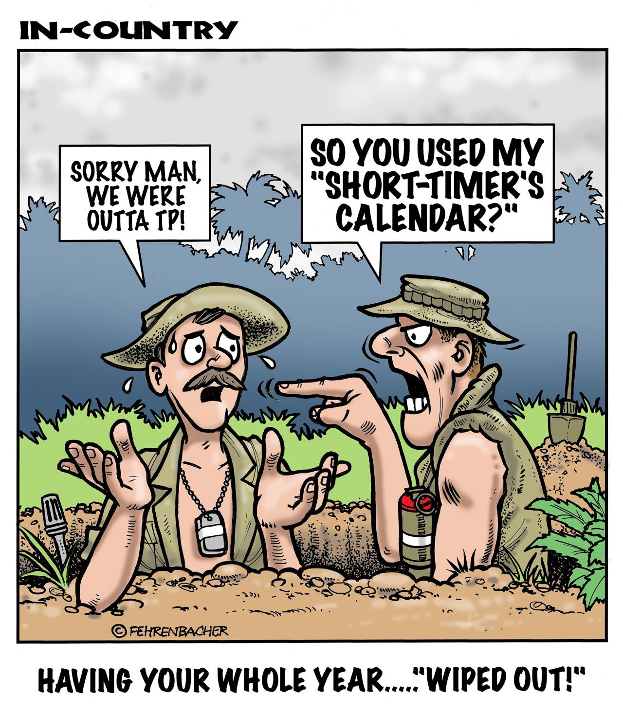 Phil enlisted in the Army in 1965 where he served for years in Vietnam. He became a graphic designer and has worked for the state of Oregon for 26 years. He retired in 2003 and started the Cartoon "In-Country". The cartoons reflect his experiences during his tour of duty in South Vietnam.